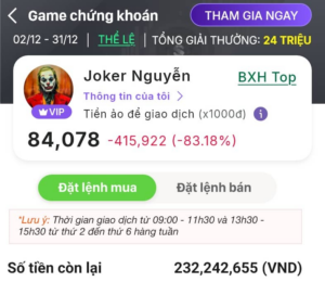Vốn ảo khổng lồ: Ngay khi đăng ký tài khoản thành công và kích hoạt tính năng “Game chứng khoán”, bạn sẽ được cấp ngay 500 triệu VNĐ tiền ảo. Số vốn này đủ lớn để bạn thoải mái thử nghiệm các chiến lược đầu tư đa dạng, từ lướt sóng ngắn hạn (T+) đến nắm giữ dài hạn các mã Blue-chip.