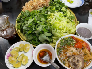 Một bát bún riêu ngon không thể thiếu rổ rau sống tươi rói, bao gồm: