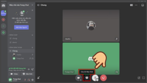 Khi đã kết nối âm thanh thành công, bạn nhìn xuống góc dưới bên trái màn hình, nhấn vào nút “Chia sẻ màn hình” (biểu tượng chiếc màn hình có mũi tên bên trong) để mở menu cấu hình stream.