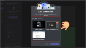 • Tab Màn hình: Tùy chọn này sẽ phát toàn bộ những gì đang hiển thị trên màn hình máy tính của bạn. Thường dùng khi bạn muốn trình chiếu nhiều cửa sổ cùng lúc nhưng cần cẩn thận với thông tin nhạy cảm.