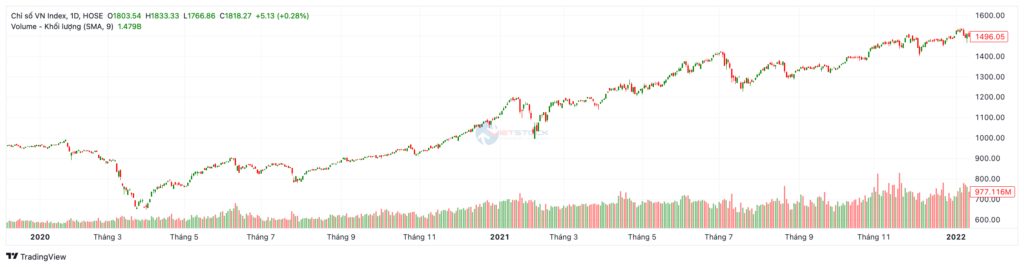 Đỉnh cao cuối cùng (Đầu 2022): VN-Index tạo đỉnh lịch sử tuyệt đối tại 1.536,24 điểm vào ngày 06/01/2022 trước khi bắt đầu chu kỳ suy thoái.