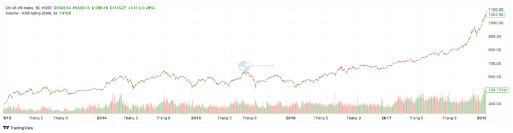Giai đoạn 2013 – 2017: Quá trình tái cấu trúc vĩ mô và chu kỳ tăng trưởng bền vững của chỉ số VNIndex qua các năm