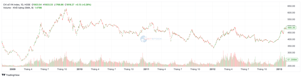 Giai đoạn 2009 – 2012: Vùng lầy nợ xấu và nỗ lực phục hồi gian truân của chỉ số VNIndex qua các năm