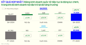 | Chỉ tiêu (Tỷ đồng) | Q4/2025 | Q4/2024 | Tăng trưởng (YoY) | Năm 2025 | Năm 2024 | Tăng trưởng (YoY) |