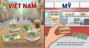 Với 100.000 VND (khoảng 4 USD), bạn có thể mua được một bữa ăn rất thịnh soạn tại Việt Nam (2 bát phở + 1 ly cà phê).
