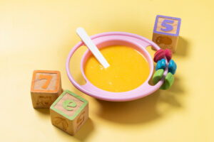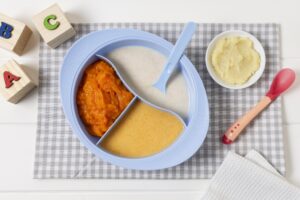 Hãy bắt đầu với các loại củ quả có vị ngọt dịu như bí đỏ, khoai lang, cà rốt kết hợp với sữa mẹ hoặc sữa công thức. Hương vị quen thuộc này giúp bé dễ chấp nhận thức ăn mới hơn.