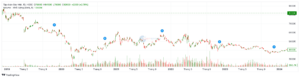 Năm Giá đóng cửa  Giá cao nhất  Giá thấp nhất  Tăng trưởng (%)