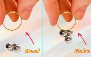 - Nếu trang sức rỗng bên trong, không khí có thể làm tăng thể tích khiến tỷ trọng thấp hơn và dễ nhầm vàng thật thành vàng giả.
