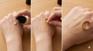 Kem nền thường chứa các hạt khoáng chất siêu nhỏ như Titanium Dioxide hoặc Kẽm Oxit để tạo độ che phủ và chống nắng. Các hạt này có độ cứng (nhám) nhất định. Khi chà vàng lên, thực chất bạn đang thực hiện một “phép thử vạch màu” phiên bản nhẹ. Vàng thật mềm nên sẽ để lại một vệt bụi vàng nhỏ trên nền kem. Vàng giả thường không để lại vệt hoặc làm trầy lớp kem.