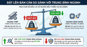 - Luôn luôn đặt chỉ số P/E của cổ phiếu lên bàn cân để so sánh. Bạn phải so nó với mức trung bình của toàn ngành và so với chính lịch sử định giá của doanh nghiệp đó trong quá khứ để biết đắt rẻ thế nào.