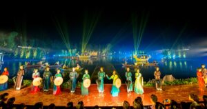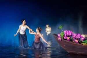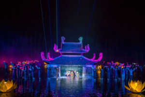 Giữa màn đêm yên tĩnh của vùng đất Sài Sơn, ngay dưới chân chùa Thầy linh thiêng, một sân khấu mặt nước rộng lớn lên tới 4.300m2 bỗng bừng sáng rực rỡ. Đây hoàn toàn không phải là những thước phim kỹ xảo trên màn hình, mà chính là Tinh Hoa Bắc Bộ, show diễn thực cảnh đầu tiên và có quy mô hoành tráng nhất tại Việt Nam.