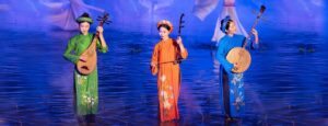 • Sân khấu: Chính là mặt hồ nước tự nhiên mênh mông nằm ngay dưới chân núi Thầy.