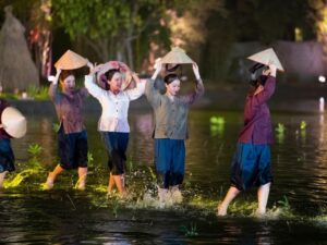 Nội dung cốt lõi của Tinh Hoa Bắc Bộ không phải là những màn biểu diễn rời rạc, mà là một câu chuyện xuyên suốt được chắt lọc từ những gì tinh túy nhất của văn hóa châu thổ sông Hồng. Vở diễn được chia thành 6 phân cảnh hay còn gọi là 6 chương mạch lạc, mỗi chương tựa như một bức tranh thủy mặc sống động được vẽ lên ngay giữa thiên nhiên.